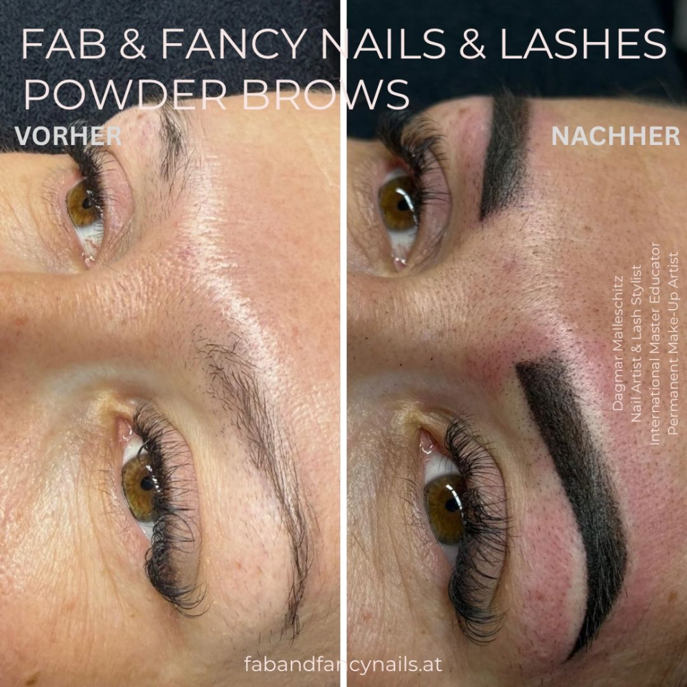 Powder Brows Links: Kaum Form, wenig Ausdruck – rechts: direkt nach dem Powder Brows Treatment! Die Farbe ist jetzt noch kräftig, wird aber in den nächsten Tagen weicher & natürlicher. Ein echter Gamechanger für den Blick! 💫