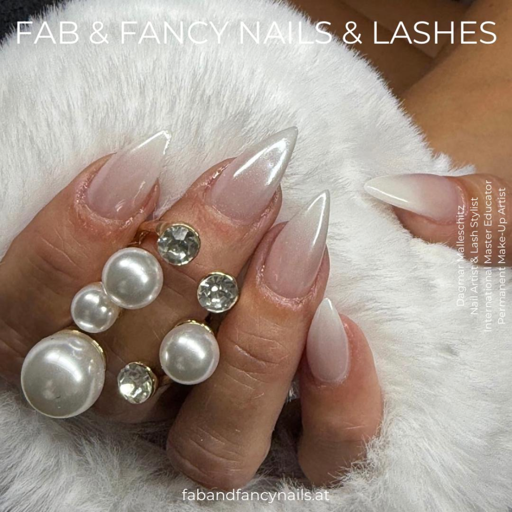 Zeitlos 💅✨ Pure Eleganz in Form & Farbe Diese milky Stiletto-Nägel mit zartem Glanz sind ein absoluter Hingucker. Feminin, edel & zeitlos!