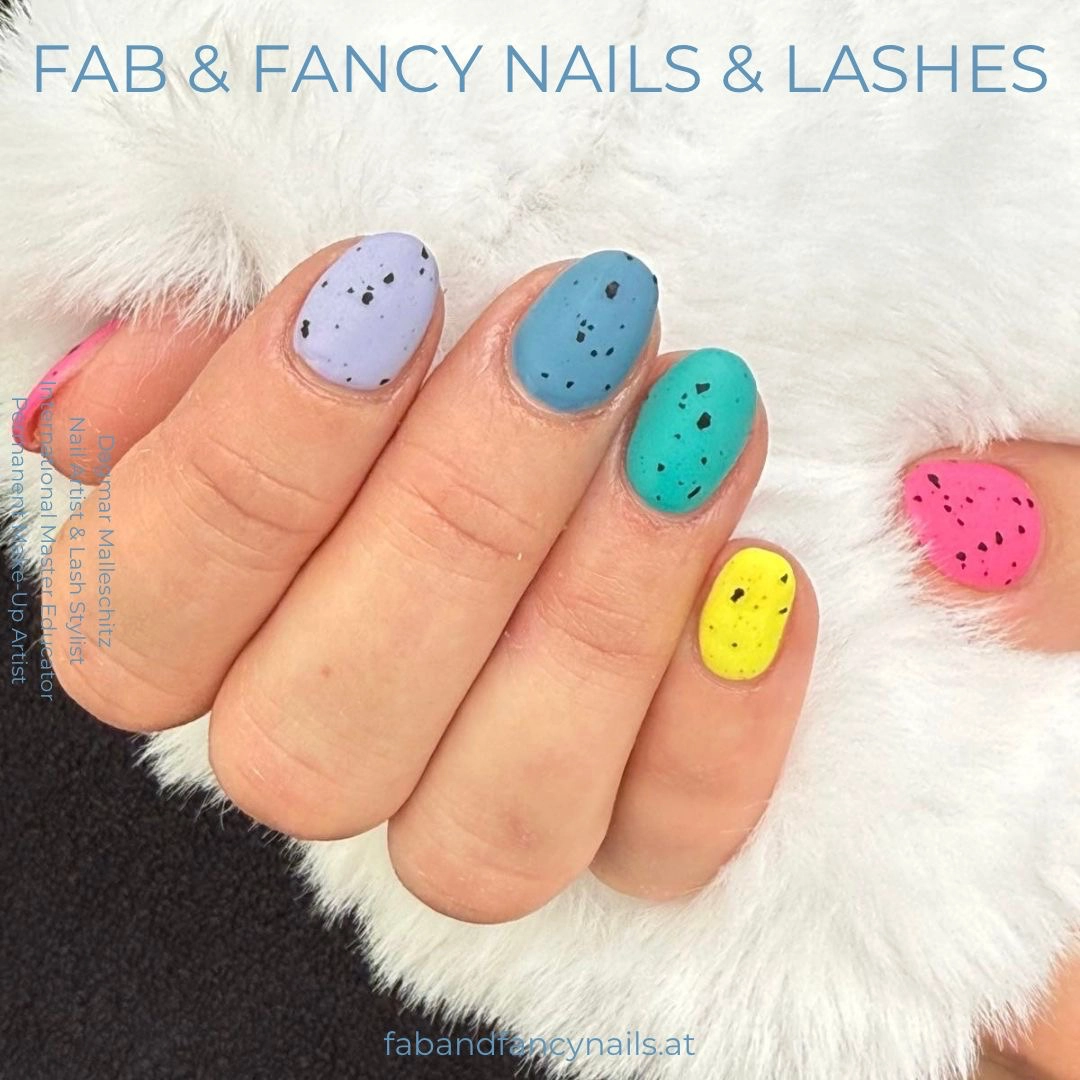 Coloured Bunter als der Frühling selbst – diese Nägel bringen Farbe und gute Laune in jeden Tag! 🌈 Die süßen Speckled-Effekte machen den Look zu etwas ganz Besonderem. Wer braucht schon Schoko-Eier, wenn man so stylische Nägel haben kann 🌸🐥🐰
