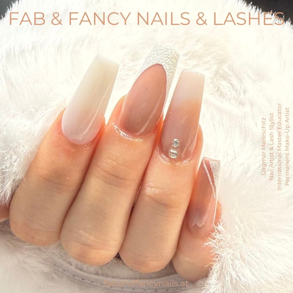 Eleganz pur Eleganter als jeder Sonnenuntergang – diese Nails lassen jeden Look strahlen! ✨ Die edlen Details und das sanfte Ombre machen sie zu einem echten Hingucker. Wer braucht schon Schmuck, wenn die Nägel so glitzern? 💎